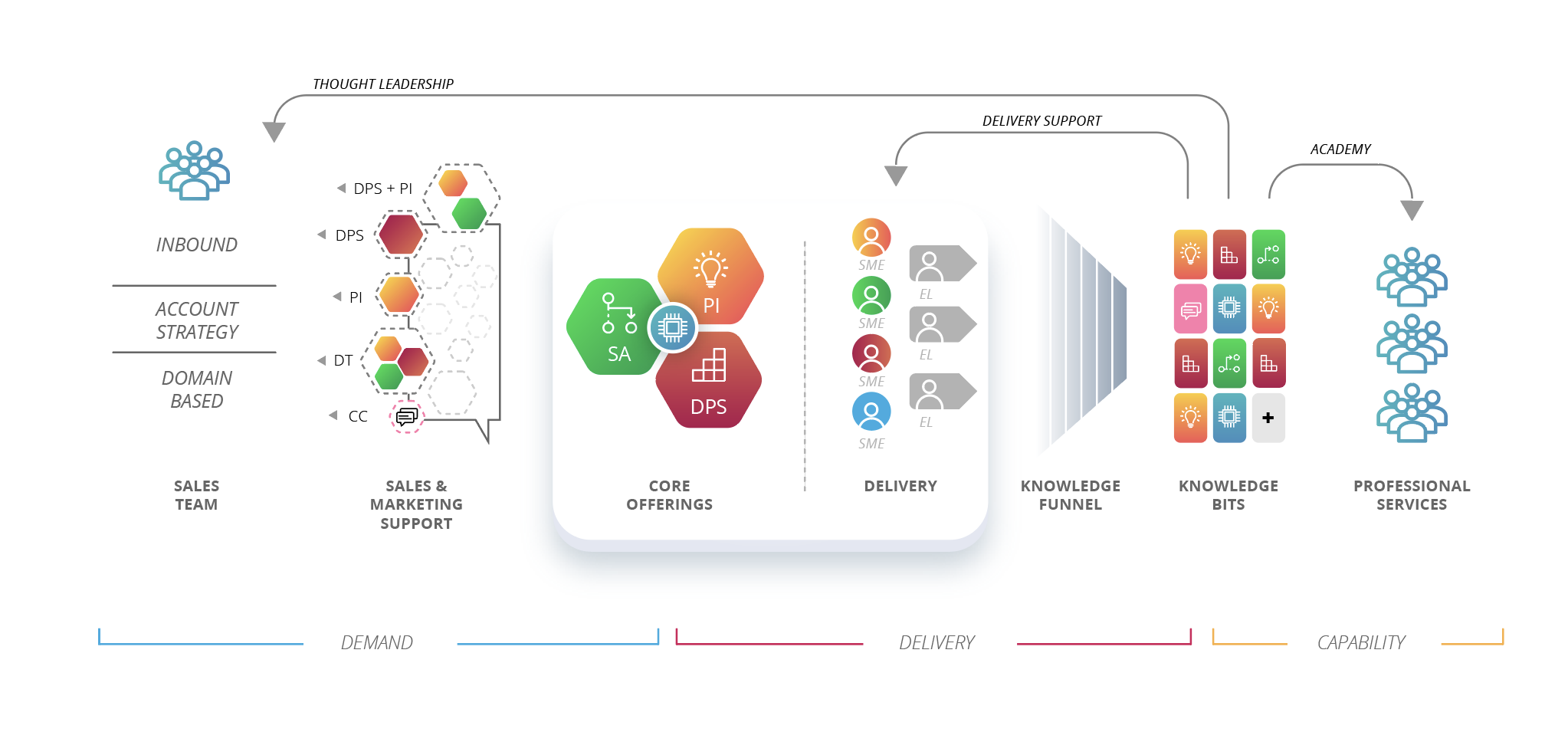 ThoughtWorks for 20+ years solved some of the most challenging problems by putting a handful of talented consultants onto the client site. The Offerings Leadership Team began to harness the insight, consulting trends and technology strategy of ThoughtWorks and the industry into a discrete set of offerings. Each offering would articulately support Demand, Delivery and TW Capability in a unique way.
